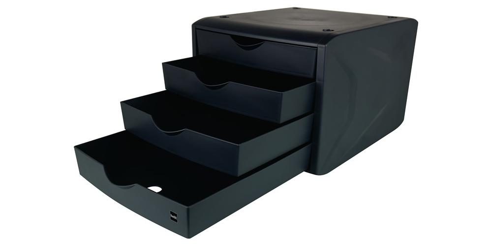 helit Schubladenbox mit Auszugssperre 4 Schubladen schwarz H215xB265xT332 mm