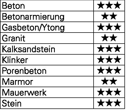 SDS-plus Zweischneider · der patentierte Hartmetall Bohrkopf sorgt für hohe Standzeiten und für besonders schnellen Bohrfortschritt - selbst in Armierung · zertifiziert durch die Prüfgemeinschaft Mauerbohrer (PGM) nach Anforderungen des Deutschen Instituts für Bautechnik (DIBt)Anwendungsbereiche: Beton, Betonarmierung, Mauerwerk, Naturstein, Kalksandstein, Fliesen, Marmor, Klinker