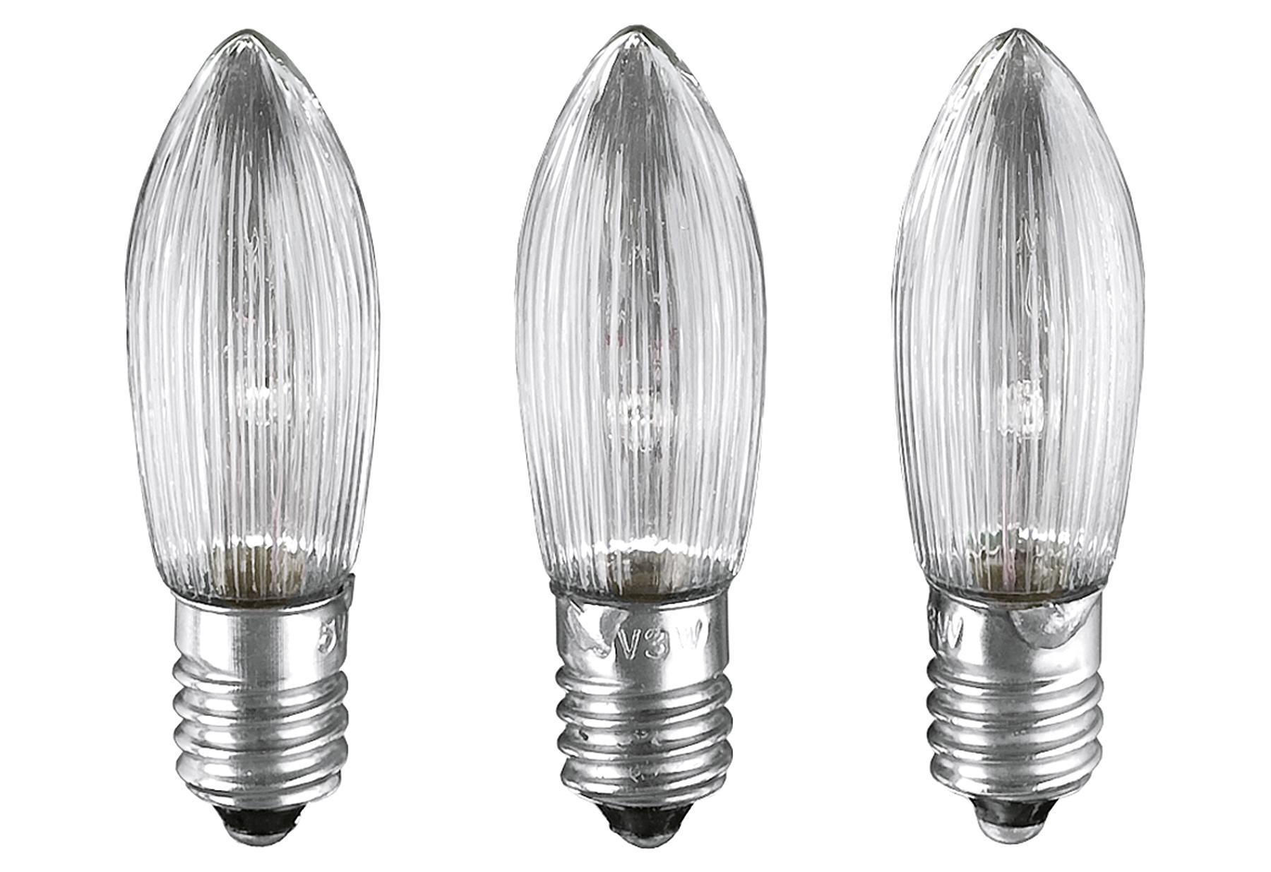 3 Ersatzkerzen für Stimmungsleuchter auf Karte mit 34V / 3W E10.