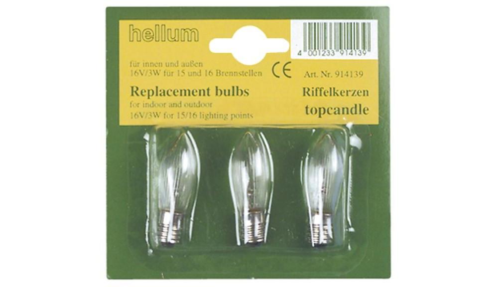 Hellum Riffelkerze für 15/16er Kette 16V/3W innen und außen klar 3 Stück