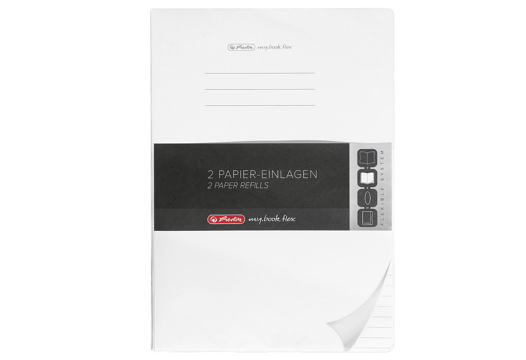 DIN A4, Papiereinlagen 2 x 40 Blatt für "my.Book Flex" Notizhefte. liniertes FSC zertifiziertes Papier,FSC Mix mit Beschriftungslinien auf weissen Vorsatzblatt. Gelocht, Mikroperforation und abgerundete Ecken.Lieferumfang: