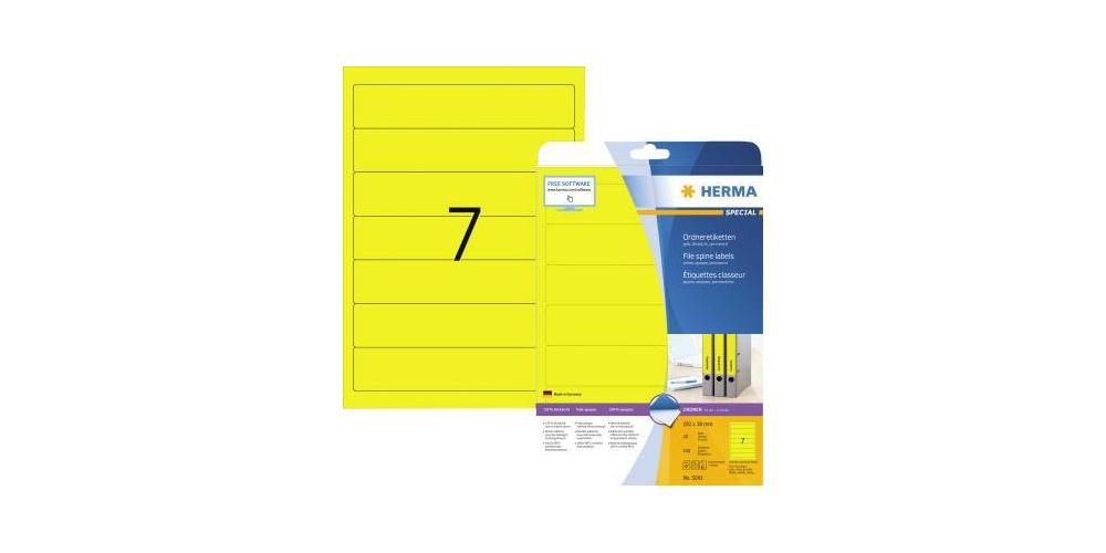 HERMA Ordnerrückenetikett schmal/kurz 38 x 192 mm (B x H) selbstklebend ohne Griffloch gelb 140 Etik./Pack.