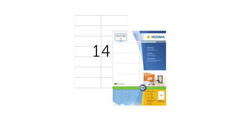 HERMA Universaletikett PREMIUM 105 x 42 mm (B x H) nicht wieder ablösbar Papier weiß 1.400 Etik./Pack.