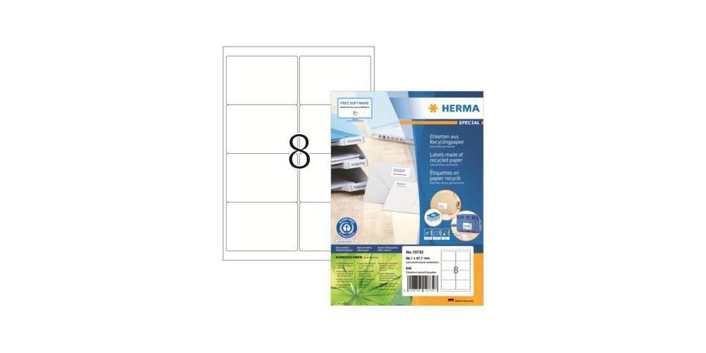 HERMA Universaletikett Recycling 99,1 x 67,7 mm (B x H) nicht wieder ablösbar Papier 100 % recycelt naturweiß 640 Etik./Pack.