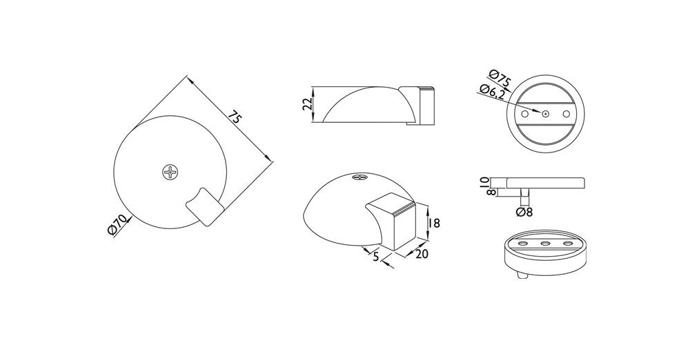 classische Schildkrötenform · mit Holzschraube 6 x 60 mm, Dübel Ø 10 mm