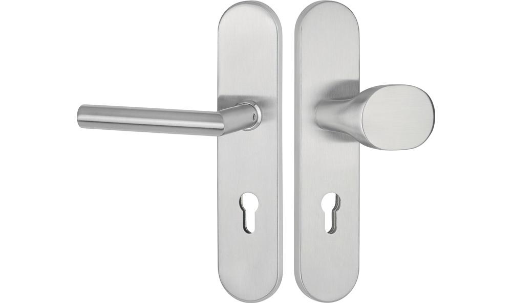 ZT-EN2 Wechselgarnitur mit Langschild 2089 S, Knopf 3128 gekröpft · Außenschild bestehend aus Stahl Unterkonstruktion mit gehärteter Außenplatte und Edelstahl Dekor-Abdeckschild, unsichtbar verschraubt · gehärtete Stahlnocken zur Aufnahme der Gewindeschrauben · 3-fach M6 Verschraubung mit Stahlschrauben und Gewindestopp · Knopf links / rechts verstellbar mit integrierter Verdrehsicherung · Innenschild mit Stahl-Unterkonstruktion und Edelstahl Dekor-Clipschild unsichtbar verschraubt. Drücker fest gelagert · Ausführung PZ gelocht · Aussenschild 12 mm starkAttribute