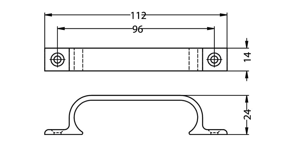 Hermeta Handgriff Ausladung 21 mm Länge 112 mm Breite 14 mm Aluminium schwarz kunststoffbeschichtet Anzahl Löcher 2, Ø 4,3 mm