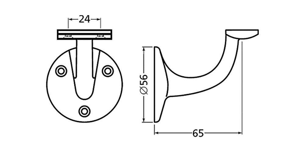 Hermeta Handlaufträger 3502 Aluminium silberfarbig eloxiert Durchmesser Wandplatte 56 mm gerade Auflage