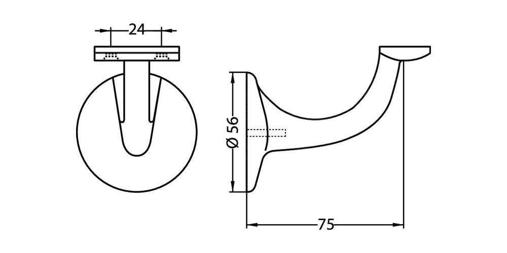 nach DIN 18040 · gerade Auflage · Aluminiumguss · Wandabstand 75 mm · Wandplatte 56 mm Ø · mit Innengewinde M8 · ohne Befestigungsmaterial · C2C-zertifiziertWeitere technische Eigenschaften: