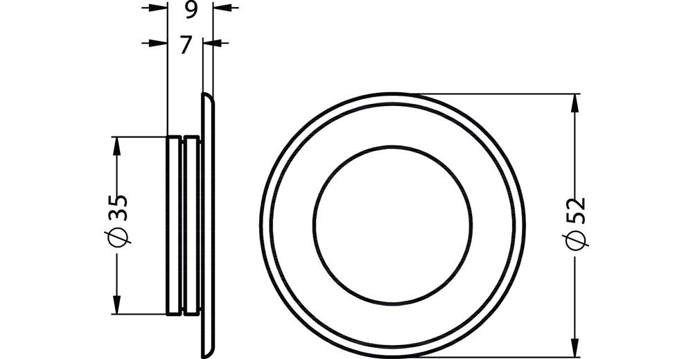 rund · Aluminium · Ø 52 · silberfarbig eloxiert bzw. schwarz pulverbeschichtet · Einlassmuschel · aufliegende Nutzung · nur ohne Schlüssellochung lieferbar