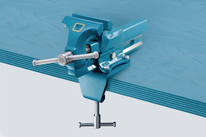 HEUER Tischklammer lässt sich mit wenigen Handgriffen – ohne Bohrungen von Löchern – einfach und schnell montieren und demontieren · kräftiger Spannhebel gewährleistet eine leichte und sichere Bedienung · 4 Schraubaufnahmen sind abgestimmt auf den HEUER Schraubstock 100 bzw. 120 · Made in GermanyLieferung ohne Schraubstock · Für den HEUER Compact Schraubstock bitte Tischklammer Größe 100 auswählen