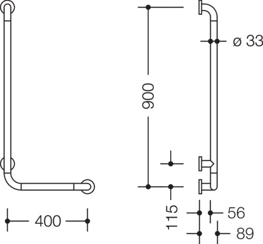 HEWI Winkelgriff Serie 801 d= 33 mm, Ausladung 90 mm 400 x 900 mm aquablau