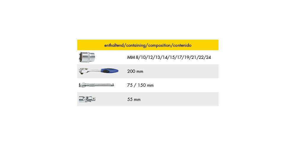HEYTEC 50842-3015 Steckschlüsselgarnitur, 15-tlg.