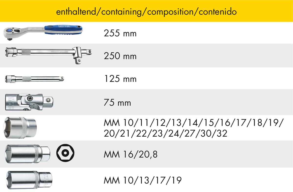 HEYTEC 50854-3016 Steckschlüsselgarnitur, 28-tlg.