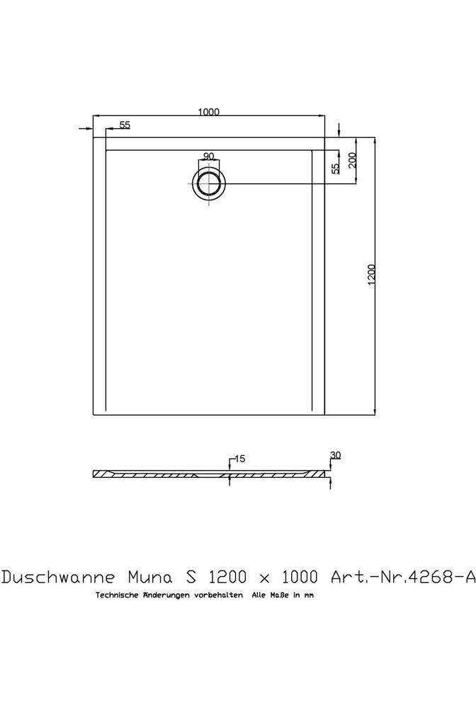 Duschwanne aus dem Material SoliquePRO Tiefe: 15 mm Wannenrandhöhe: 30 mm Abflussdurchmesser: 90 mm Einbauhöhe: 112 - 140 mm Solique ist ein Verbundmaterial aus vor allem Dolomit · Harz sowie Härter. Die Oberfläche besteht aus widerstandsfähigem Gelcoat.Weitere technische Eigenschaften:
