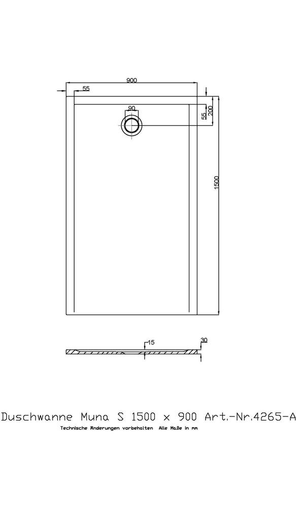 HOESCH Duschwanne Muna S 1500x900x30mm weiß 1500 x 900 x 30 mm weiß