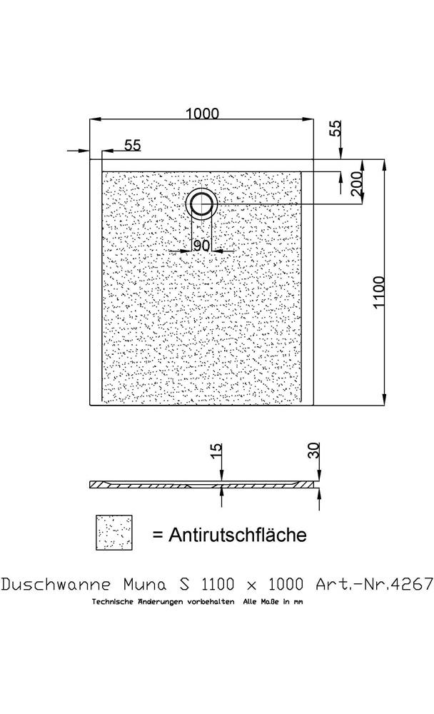 Duschwanne aus dem Material SoliquePRO Tiefe: 15 mm Wannenrandhöhe: 30 mm Abflussdurchmesser: 90 mm Einbauhöhe: 112 - 140 mm Solique ist ein Verbundmaterial aus vor allem Dolomit · Harz sowie Härter. Die Oberfläche besteht aus widerstandsfähigem Gelcoat. SoliquePRO ist eine zusätzliche Oberfläche · die eine Rutschhemmung nach Rutschklasse C ermöglicht.Weitere technische Eigenschaften: