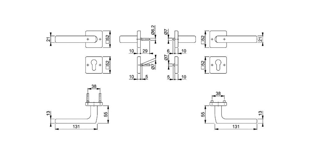| Drückerbefestigung | Standard-Stift Millimeter |