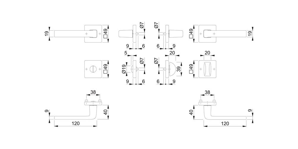 HOPPE Rosettengarnitur Dublin 1124 / 843KV/843KVS Aluminium F1 eckig SK/OL DIN links / rechts D/D