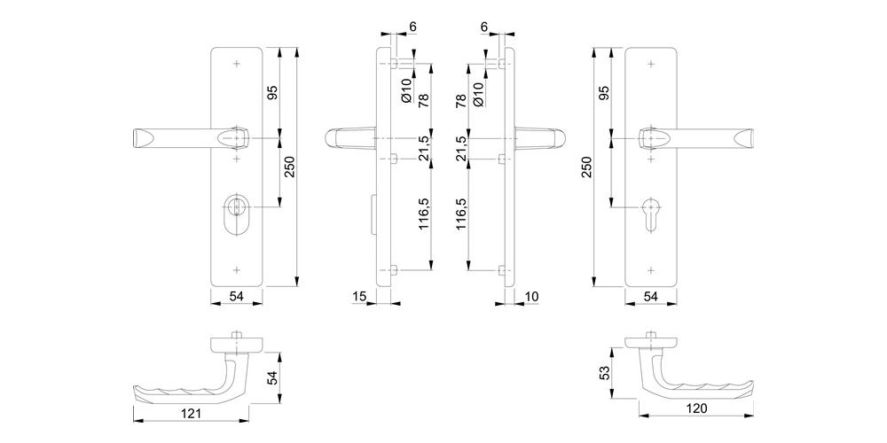 für Abschlusstüren mit ZA · geprüft nach DIN 18257 ES1 (SK2) · Unterkonstruktion: außen Stahl, innen Aluminium, Stütznocken · Wechselgarnituren mit gekröpftem Knopf · Zylinderabdeckung: gehärteter Stahl, für vorstehende Zylinderlänge 10-18 mm · HOPPE FDW Profilstift-Verbindung · PZ · Befestigung: verdeckt, durchgehend, Gewindeschrauben M6Weitere technische Eigenschaften: