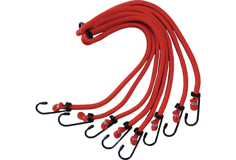 Textilumwirkter Gummi-Expander mit acht kunststoffummantelten Stahlhaken und Kappen · SB verpacktWeitere technische Eigenschaften: