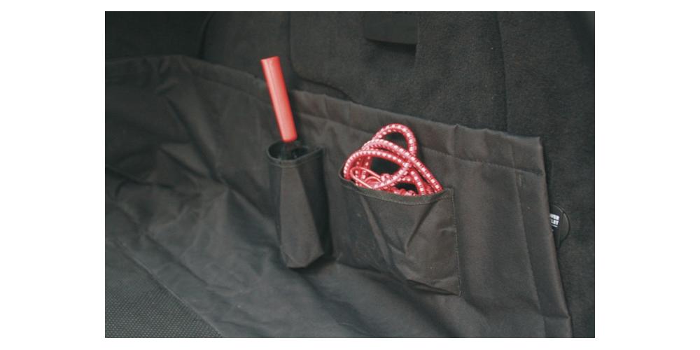 schützt den Kofferraum und die Innenverkleidung vor Schmutz, Nässe und Tierhaaren · flexible Passform durch Klettverschlüsse · einfach Befestigung mit Klettband und Haltebändern · mit Schlitzen für Hundeleinen und Sicherheitsgurte · kein Verrutschen der Ladung dank Antirutsch-Einsatz · wasser- und schmutzabweisend · diverse Taschen für Utensilien etc. · praktischer Stoßstangen- und Barriereschutz gegen Kratzer · Ladekanten- inkl. Barriereschutz 90 x 60 cmWeitere technische Eigenschaften: