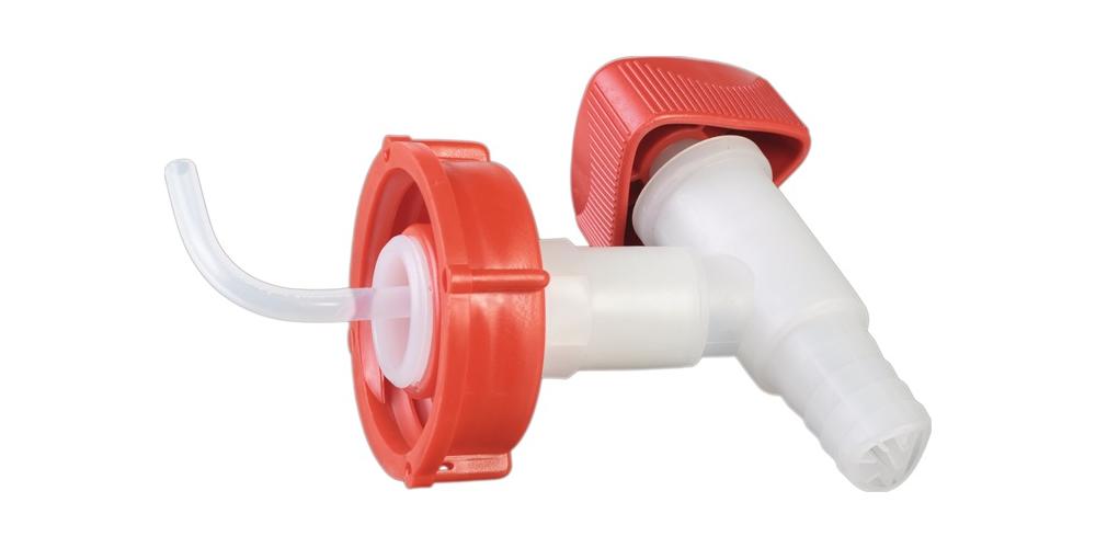 sehr gute chemische Beständigkeit gegen Säuren, Laugen und weitere Chemikalien · mit rotem Drehgriff · schnelles, gluckerfreies Auslaufen durch integrierte Belüftung · um 360° drehbar in jede gewünschte PositionAttribute