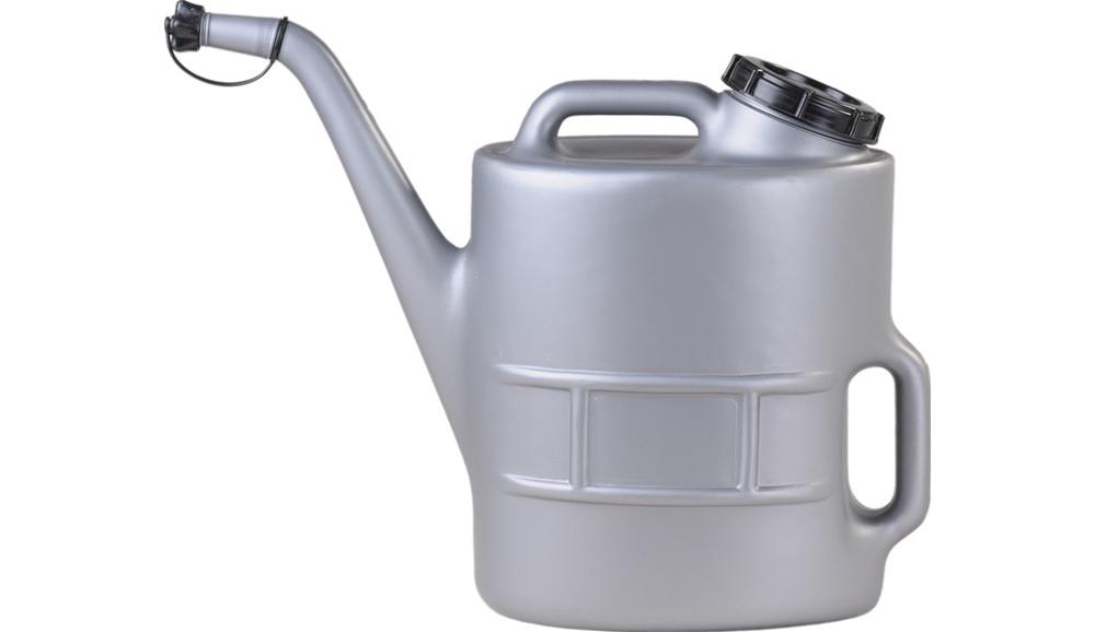 Inhalt 13l · aus bruchsicherem Polyethylen · silbergrau · Temperaturbeständigkeit von -20 °C bis +70 °C · zwei Griffe · große Einfüllöffnung · Siebeinsatz in der Einfüllöffnung · Schraubverschluss am Auslauf · sehr gut chemische Beständigkeit gegen Säuren und LaugenWeitere technische Eigenschaften: