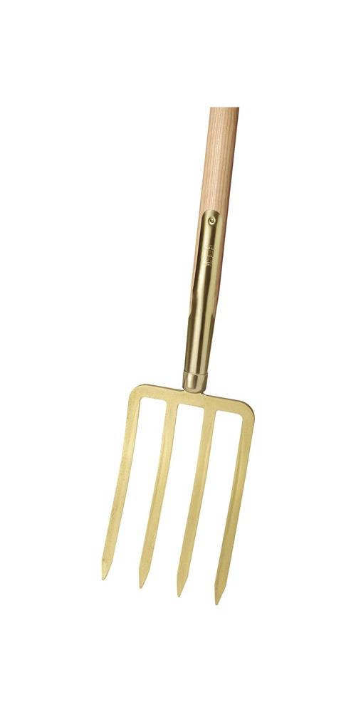 Spatengabel aus gehärtetem Spezialstahl · 4 Bajonettzinken · Schienenzwinge · gold · Eschen-T-Stiel 850 mmAttribute