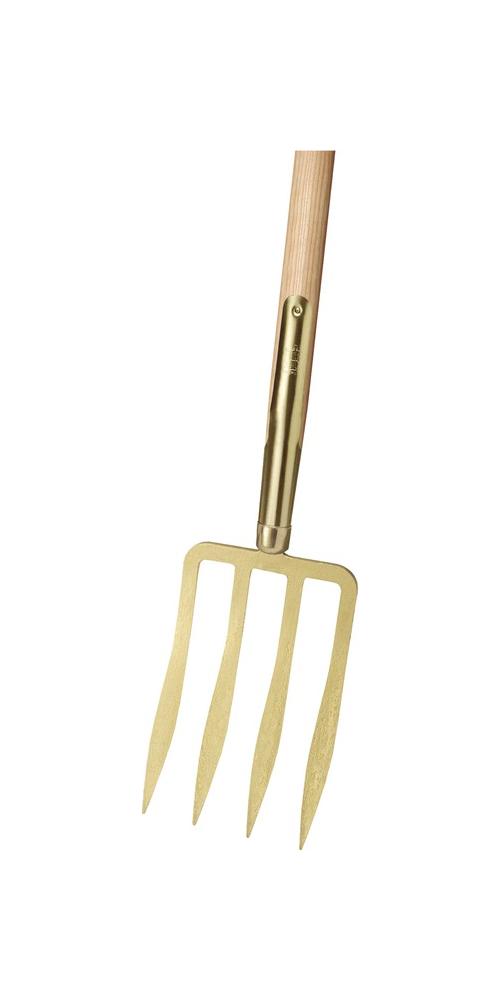 Spatengabel aus gehärtetem Spezialstahl · 4 Bajonettzinken · Schienenzwinge · gold · Eschen-T-Stiel 850 mmAttribute