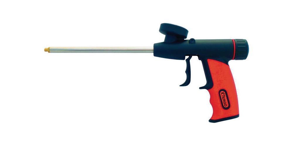 stabile Kunststoffpistole · Transportrohr und Abzug aus Metall · Dosierspitze aus Messing · Adapter mit Antihaftkugel · optimierter Schaumdurchlass · softgummierter Handgriff · extra große StellschraubeWeitere technische Eigenschaften: