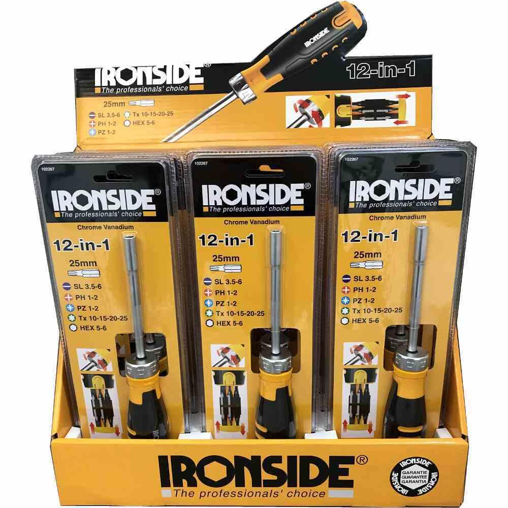 IRONSIDE Ratschen-Schraubendreher 12 in 1 im Display
