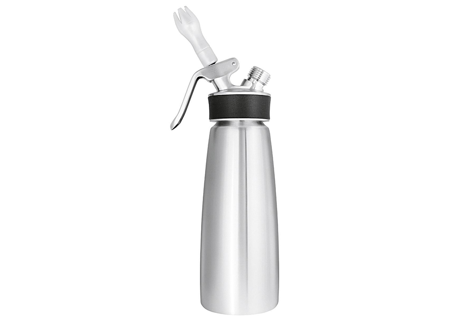 der Alleskönner für die Küche: zur Zubereitung von locker-leichten Espumas, Fingerfood, warmen und kalten Saucen, aufgeschlagenen Cremesuppen sowie Schlagsahne und Desserts, Gerät kann in der Bain Marie bei max. 75 Grad warm gehalten werden, Flaschenkörper und Gerätekopf aus Edelstahl, entwickelt für den professionellen Einsatz, temperaturbeständige Silikondichtung mit Entnahmelasche für schnelle, hygienische Reinigung, spülmaschinengeeignet