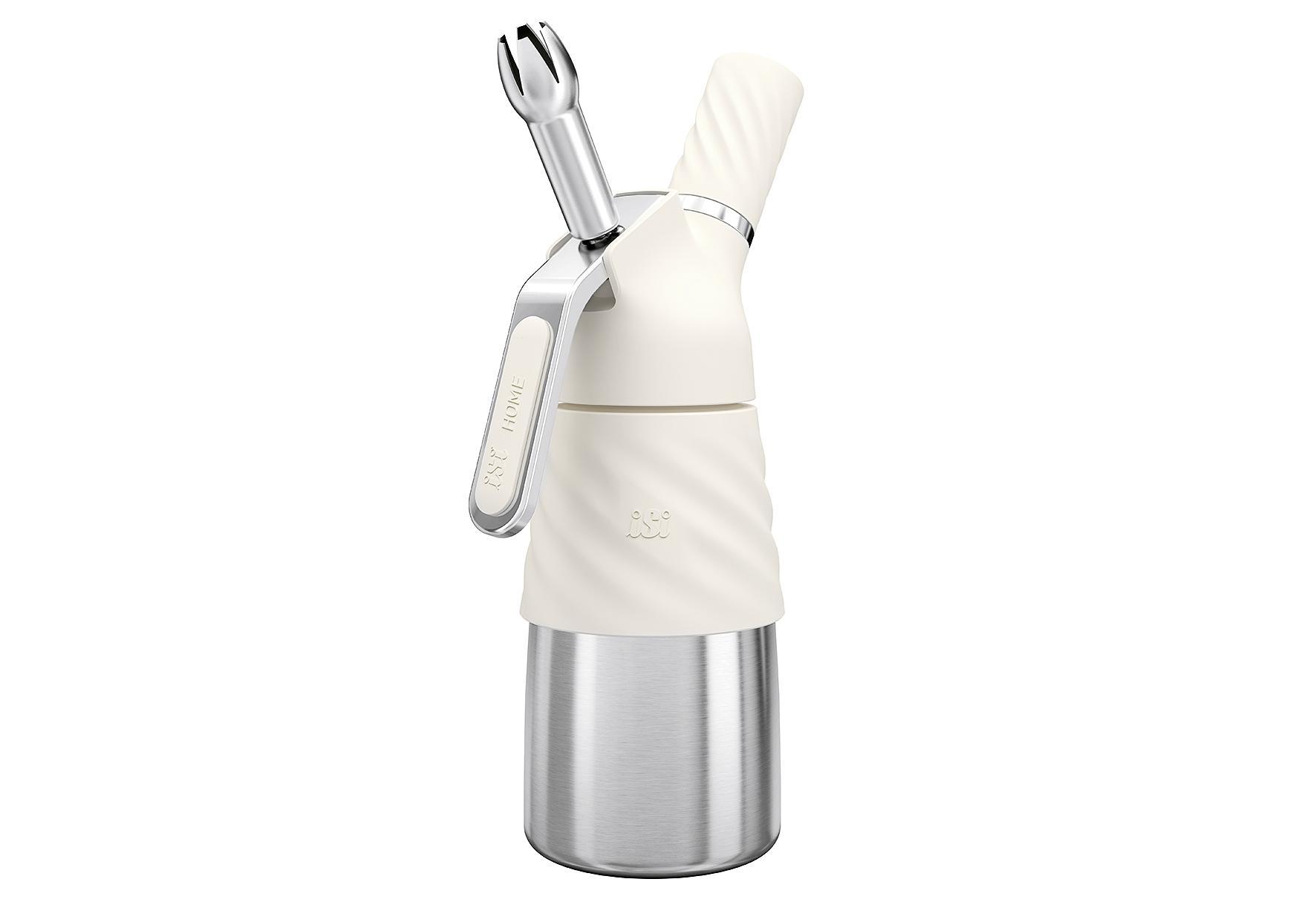 Komplett spülmaschinenfest - Sahnebereiter aus Premium Edelstahl für jahrelange Kochfreude, komfortable Hebelbedienung zur einfachen Portionierung, inklusive 3 Garniertüllen (Stern, Tulpe, gerade Tülle) aus hochwertigem Edelstahl, nur für kalte Anwendungen geeignet, das geschlossene System erlaubt, die kalten Zubereitungen mehrere Tage bei gleichbleibender Qualität ohne Zusatz von Konservierungsstoffen im Kühlschrank zu lagern, nicht für den professionellen Einsatz in der Gastronomie geeignet