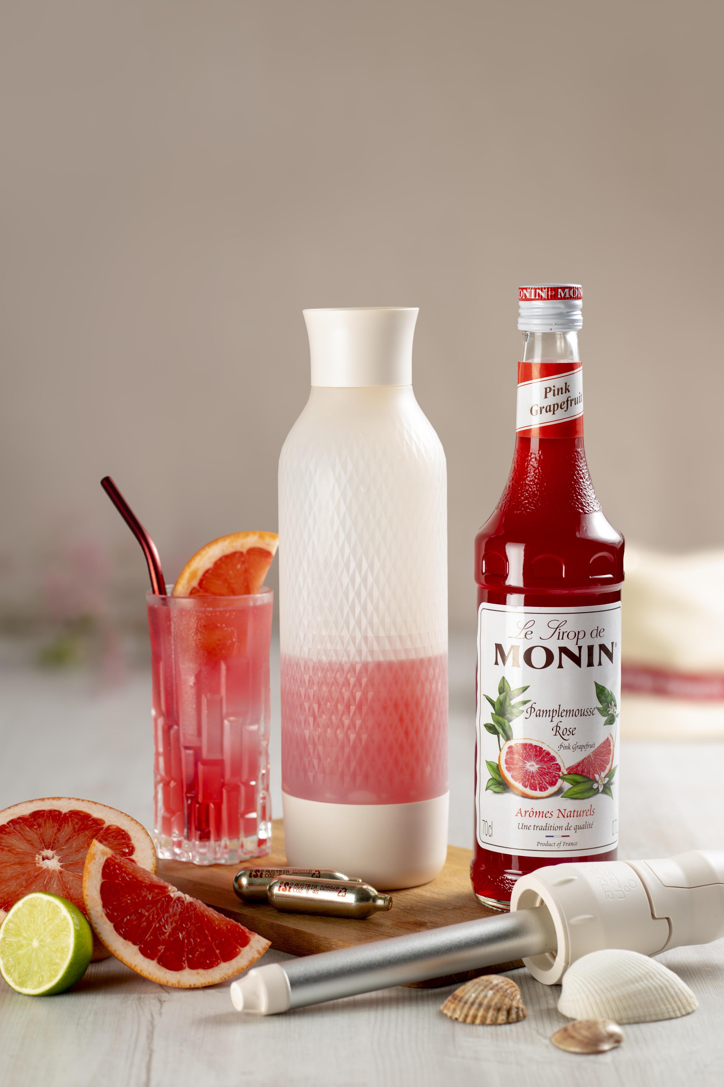 Inhalt: 1 x PET-Flasche mit Verschlusskappe, 1 x Gerätekopf mit Getränkesprudelstab, 6 x Kohlensäurekapseln, wiederbefüllbare, hochwertige Flasche mit Füllstandsmarkierungen und Schraubverschlusskappe, transparentes Flaschensleeve aus Silikon für optimalen Halt, nur für kalte Getränke geeignet, nicht spülmaschinengeeignetSicherheitshinweise und Gebrauchsanleitungen der Sodagerätes und Kapseln unbedingt einhalten. Das Mindesthaltbarkeitsdatum der Flasche ist zu beachten. Für Kapseln siehe eigene Produktinformation. Missbräuchliche Verwendung kann Ihre Gesundheit gefährden. Ungeeignet und nicht zugelassen für andere als die ausdrücklich angeführten Zwecke. Befüllter Behälter steht unter Druck. Aufbewahrung außerhalb der Reichweite von Kindern.