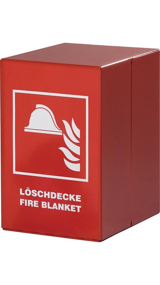 nach DIN EN 1869 · der Behälter besteht aus Stahl · ist von vorne aufklappbar, rot lackiert und mit Aufschrift Löschdecke · Fire-blanket bedrucktWeitere technische Eigenschaften: