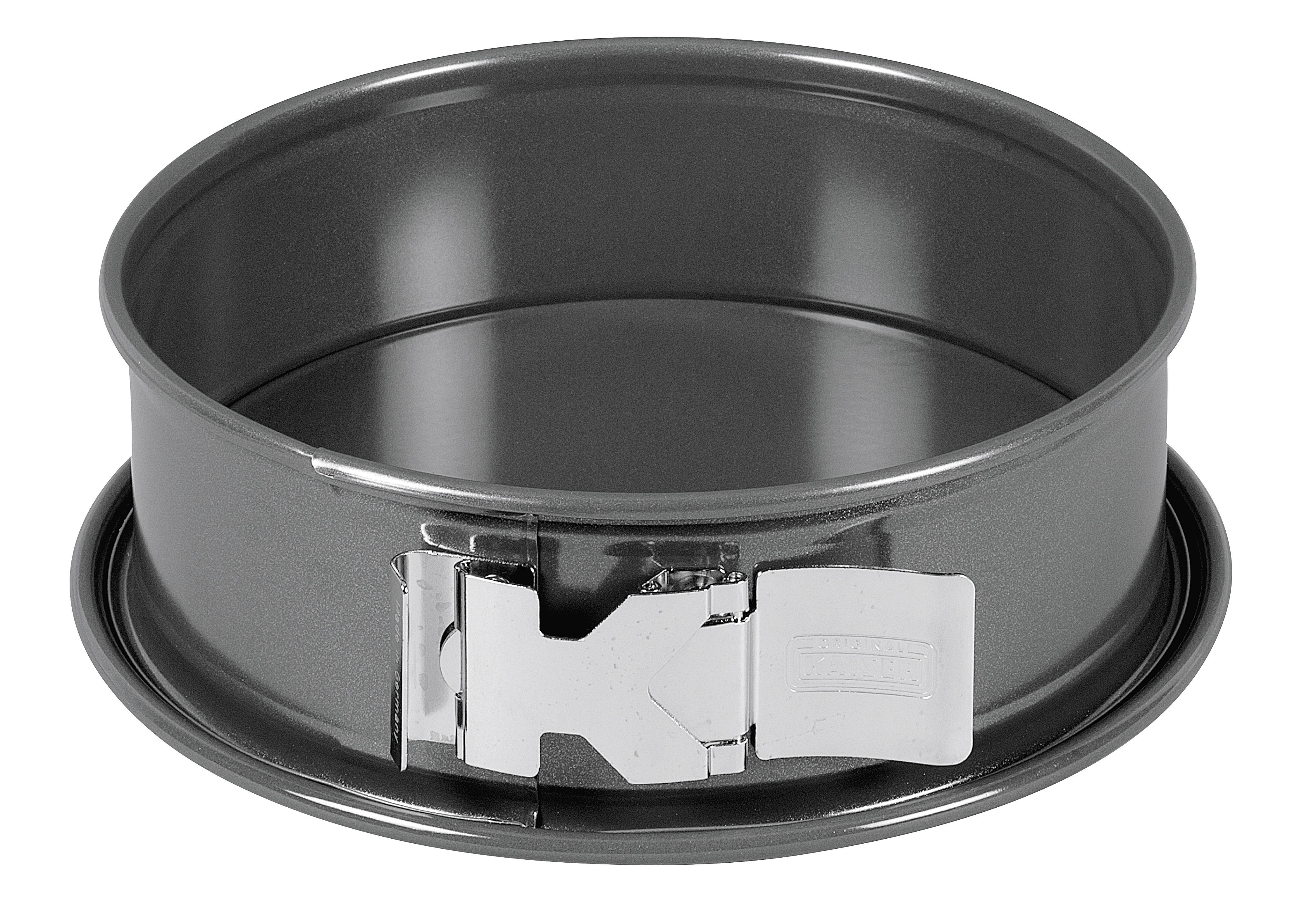 Neu entwickelter Springform-Verschluss "Safe Click": optimierte Handhabung, leichtere Reinigung, mit keramischer KAIRAMIC Antihaftbeschichtung, extrem kratzfest, PTFE-frei, schnittfest emaillierter, glatter und auslaufsicherer FlachbodenAttribute