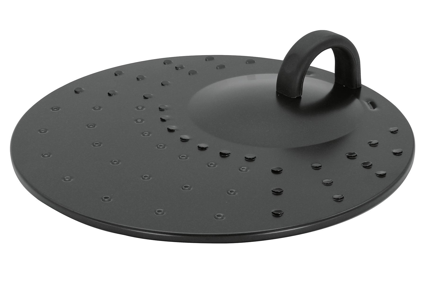 Mit dem schwarzen Spritzschutzdeckel aus hitzebeständigem Metall halten Sie Fettspritzer davon ab Ihre Kochfläche zu verschmutzen und scharfem Anbraten steht nichts im Wege. Die Löcher sorgen für die benötigte Sauerstoffzufuhr. Mit Kunststoffgriff, passend zu vielen Pfannenserien.Attribute