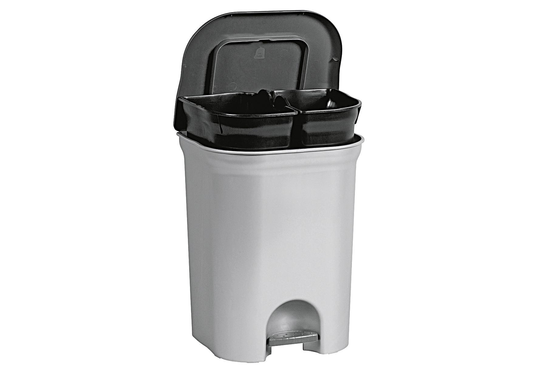 Kunststoff, mit 2 herausnehmbaren Abfallbehältern zu je ca. 11 Liter, Step & Close Pedal, cadmiumfrei, lebensmittelecht, umweltfreundlich, recycelbarAttribute