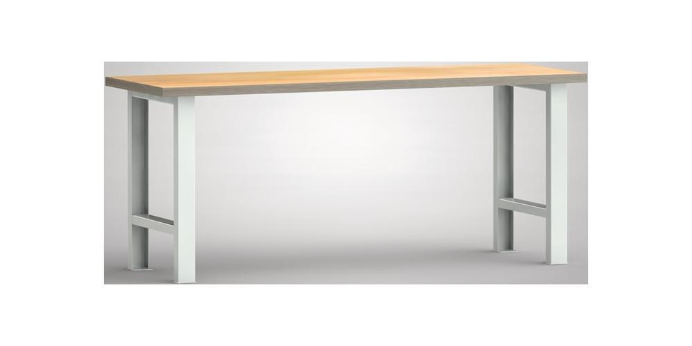 Untergestell aus U-Profilstahlrohr 80 x 40 mm · robuste Lackierung in lichtgrau, RAL 7035 · Buche-Multiplexplatte, Stärke 40 mm · Tragfähigkeit max. 800 kg bei gleichmäßig verteilter statischer Flächenlast · zerlegte Anlieferung, einfache MontageAttribute