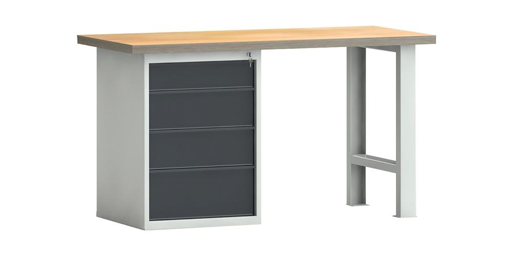 KLW LUTZ Werkbank PW 700 B1500xT700xH840mm Buche Multiplex lichtgrau / anthrazitgrau 4 Schubl.