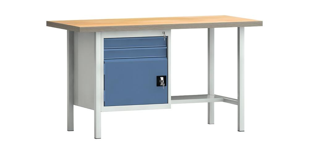 KLW LUTZ Werkbank PW 700 B1500xT700xH840mm Buche Multiplex lichtgrau / brillantblau 2 Schubl. 1 Tür