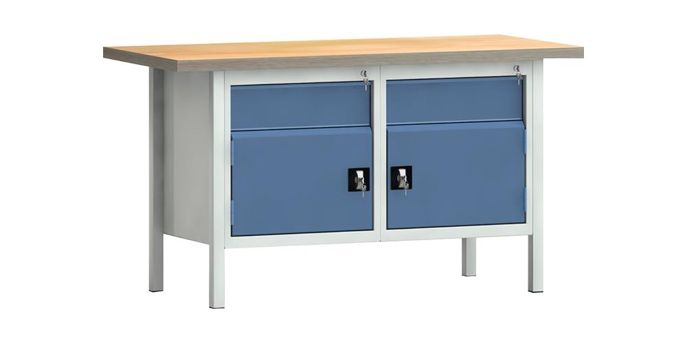 KLW LUTZ Werkbank PW 700 B1500xT700xH840mm Buche Multiplex lichtgrau / brillantblau 2 Schubl. 2 Türen