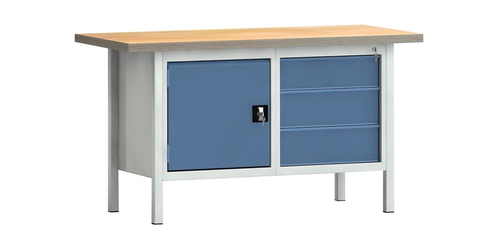 KLW LUTZ Werkbank PW 700 B1500xT700xH840mm Buche Multiplex lichtgrau / brillantblau 3 Schubl. 1 Tür