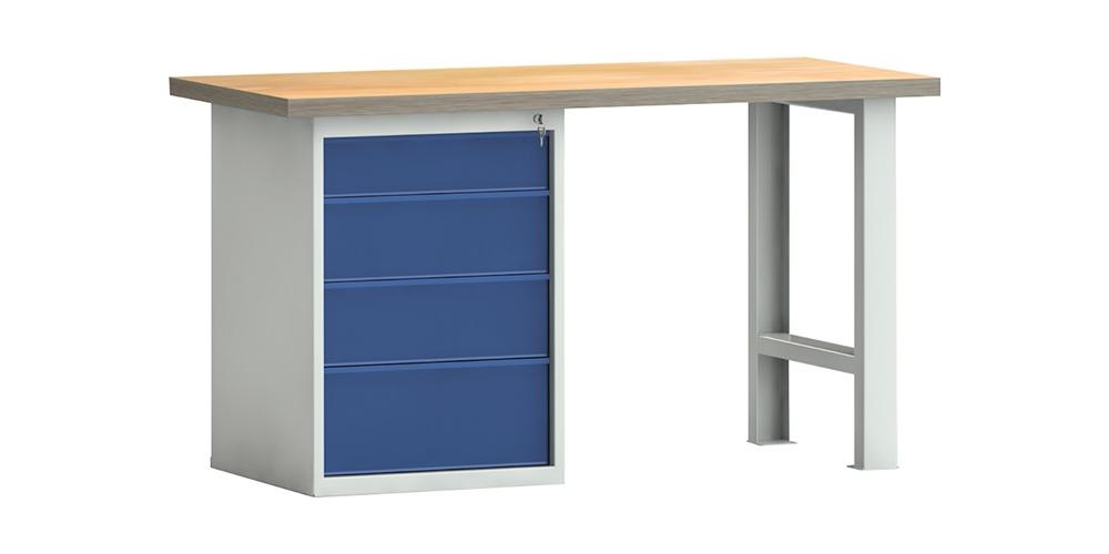 KLW LUTZ Werkbank PW 700 B1500xT700xH840mm Buche Multiplex lichtgrau / enzianblau 4 Schubl.