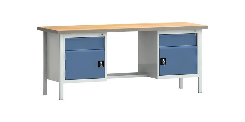 KLW LUTZ Werkbank PW 700 B2000xT700xH840mm Buche Multiplex lichtgrau / brillantblau 2 Schubl. 2 Türen