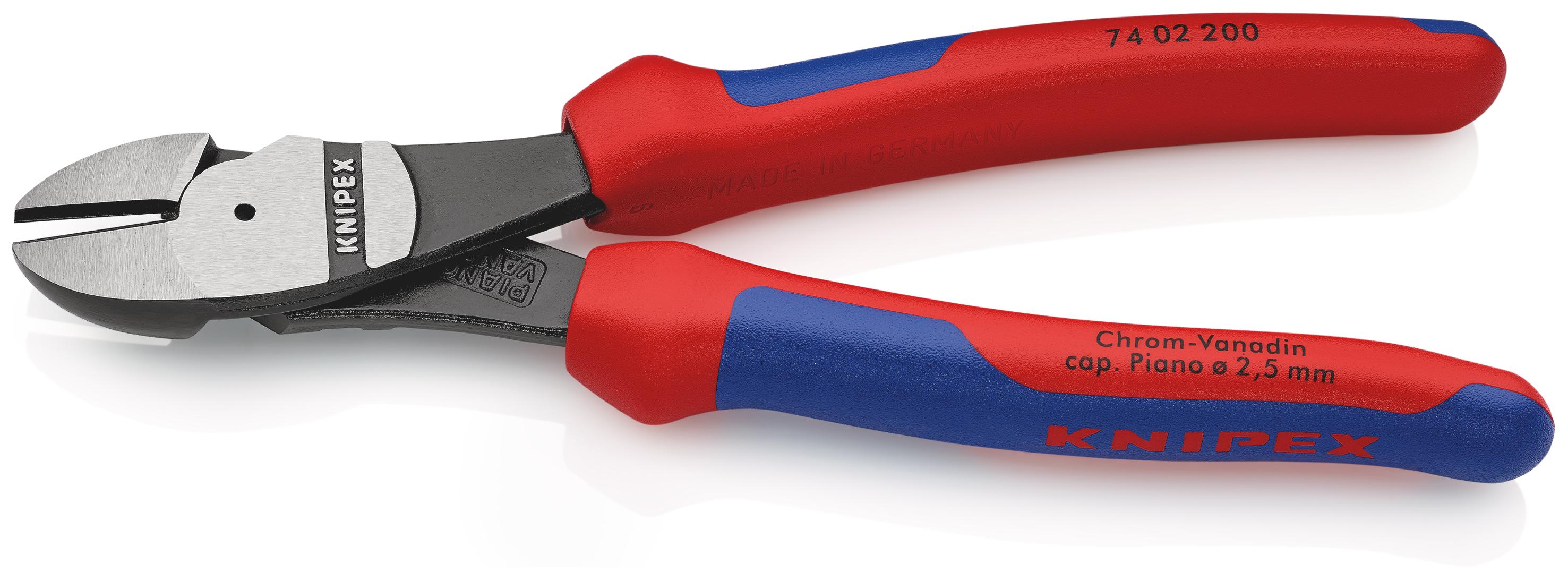 KNIPEX 74 02 200 Kraft-Seitenschneider mit Mehrkomponenten-Hüllen schwarz atramentiert 200 mm