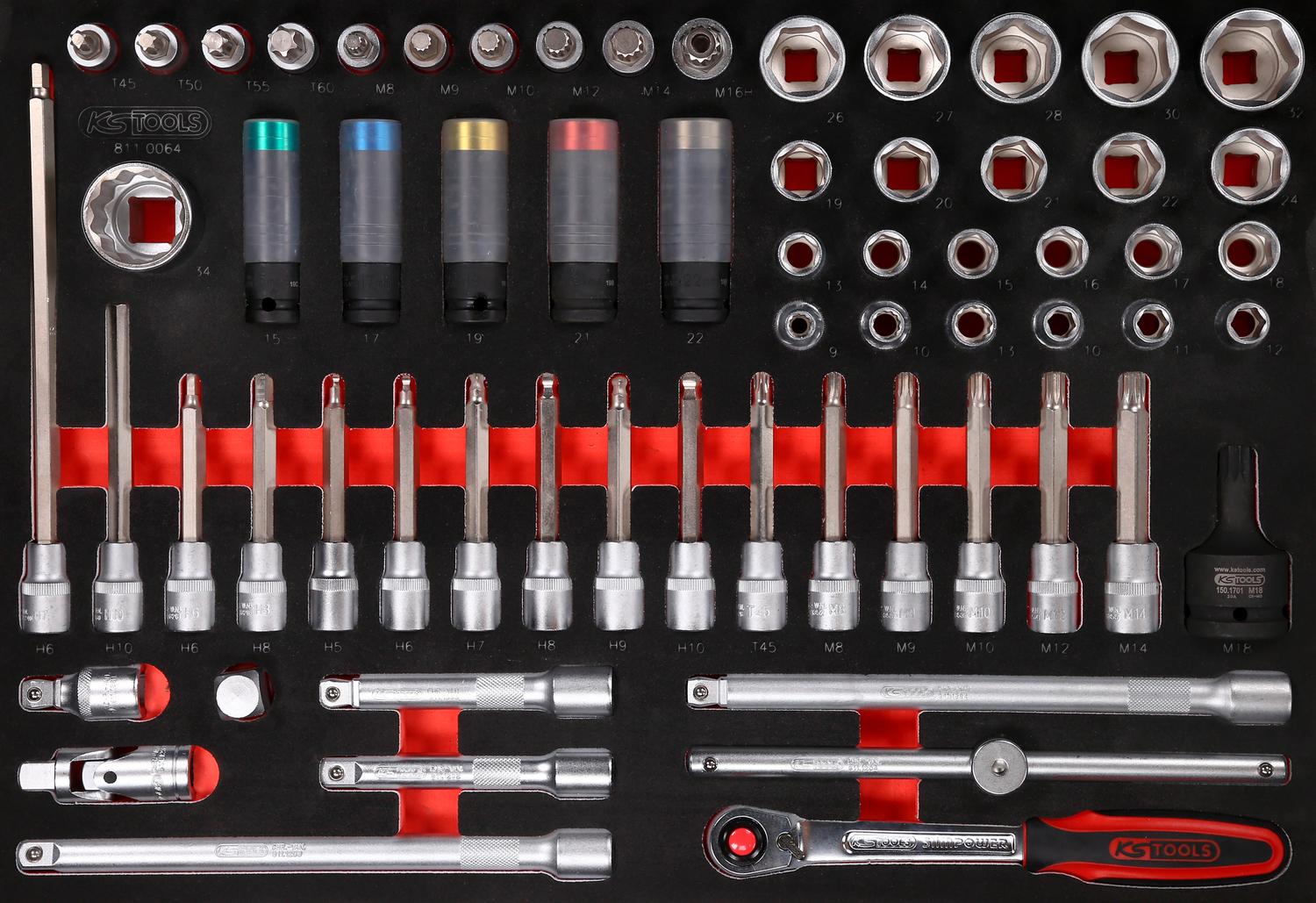 KS TOOLS 1/2" Bit-Stecknuss-Satz in Schaumstoffeinlage, 64-tlg