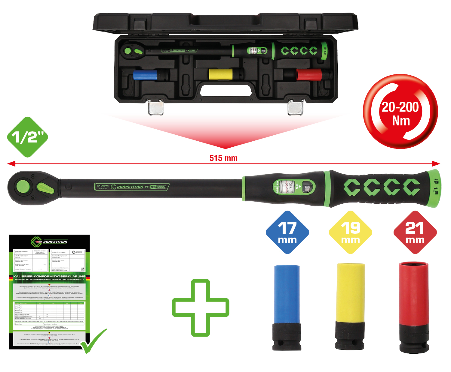 KS TOOLS 1/2" COMPETITION Ratschen-Drehmomentschlüssel-Satz, 20-200Nm, 4-tlg