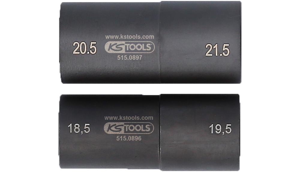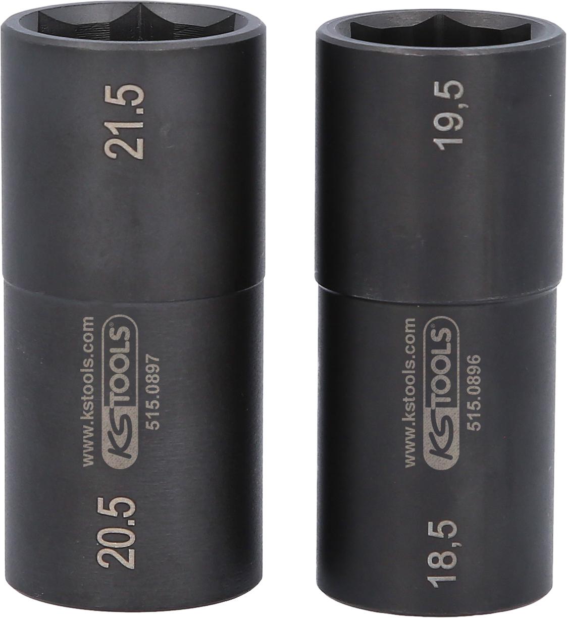 KS TOOLS 1/2" Spezial-Alu-Felgen-Kraft-Stecknuss-Satz für Ford, 18,5 / 19,5 / 20,5 / 21,5 mm, 2-tlg